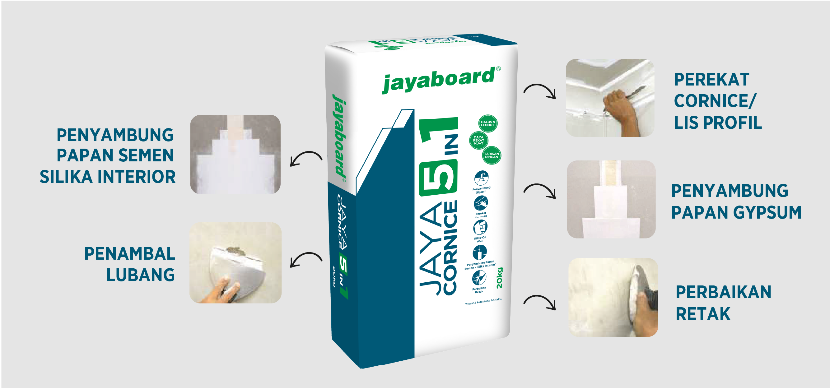 Corncie Jaya 5 In 1- 20Kg - Jayaboard Deskripsi: Cornice Jaya 5 In 1 dari Jayaboard adalah material berkualitas tinggi yang digunakan untuk pemasangan dan finishing plafon gypsum. Produk ini multifungsi, praktis, dan memberikan hasil yang rapi serta kuat, cocok untuk berbagai kebutuhan konstruksi interior. Spesifikasi Produk: Merk: Jayaboard Berat: 20 kg Penjualan: per zak Keunggulan Produk: ✔ Multifungsi (5 in 1) untuk berbagai kebutuhan plafon ✔ Daya rekat kuat & hasil rapi ✔ Mudah diaplikasikan ✔ Cocok untuk finishing plafon gypsum ✔ Kualitas terpercaya dari Jayaboard Pengaplikasian: Pemasangan lis plafon (cornice) Finishing sambungan gypsum Perbaikan dan perapihan plafon ???? Stok tersedia & siap kirim ???? Hubungi kami untuk pemesanan & info lebih lanjut