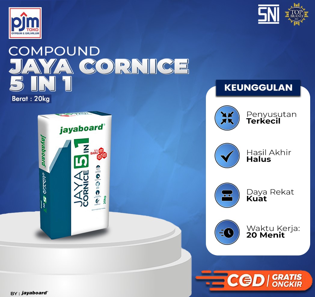 Corncie Jaya 5 In 1- 20Kg - Jayaboard Deskripsi: Cornice Jaya 5 In 1 dari Jayaboard adalah material berkualitas tinggi yang digunakan untuk pemasangan dan finishing plafon gypsum. Produk ini multifungsi, praktis, dan memberikan hasil yang rapi serta kuat, cocok untuk berbagai kebutuhan konstruksi interior. Spesifikasi Produk: Merk: Jayaboard Berat: 20 kg Penjualan: per zak Keunggulan Produk: ✔ Multifungsi (5 in 1) untuk berbagai kebutuhan plafon ✔ Daya rekat kuat & hasil rapi ✔ Mudah diaplikasikan ✔ Cocok untuk finishing plafon gypsum ✔ Kualitas terpercaya dari Jayaboard Pengaplikasian: Pemasangan lis plafon (cornice) Finishing sambungan gypsum Perbaikan dan perapihan plafon ???? Stok tersedia & siap kirim ???? Hubungi kami untuk pemesanan & info lebih lanjut